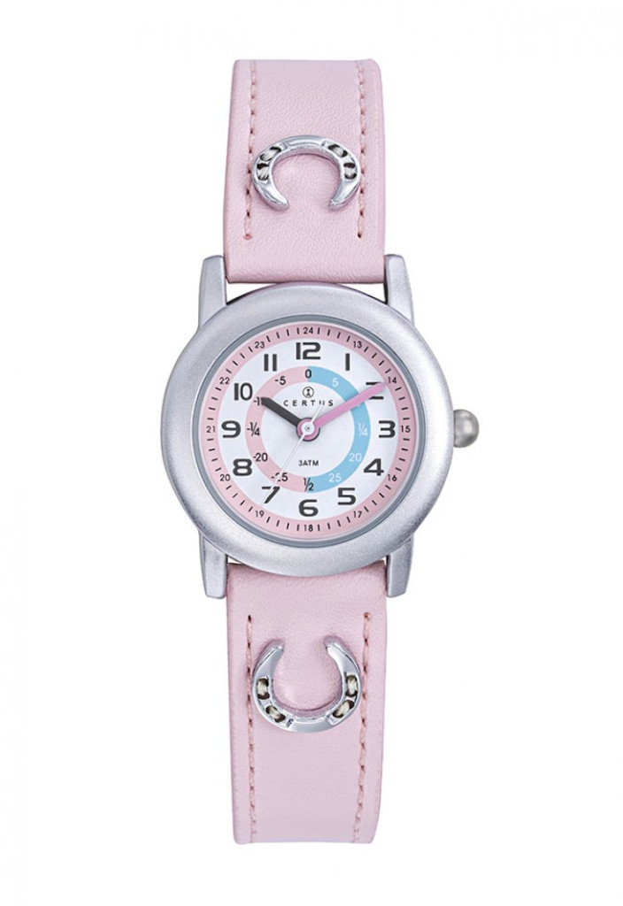 Óratok anyaga: FémÓratok átmérője : 28 mmÓratok formája: kerekÓratok színe: ezüstSzíj anyaga: Műanyag Szíj színe: rózsaszínKijelzés típusa: Analóg Analóg kijelzés