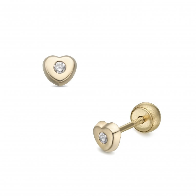 Lisa JTAG-0691-18 - Lisa középen köves szívecske gyerek fülbevaló gömbzárral