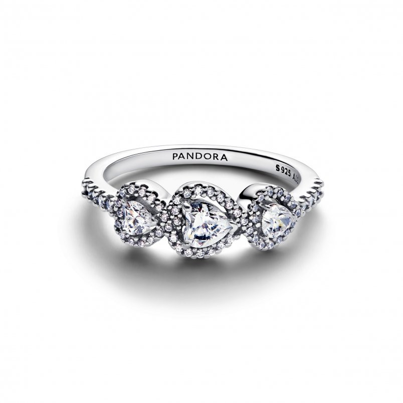 A múltért, a jelenért és a jövőért. A sterling ezüstből készült gyűrűt három szív alakú kő díszíti, amelyeket pavé glória köt össze. A szeretet ragyogó szimbóluma annak minden szakaszában.