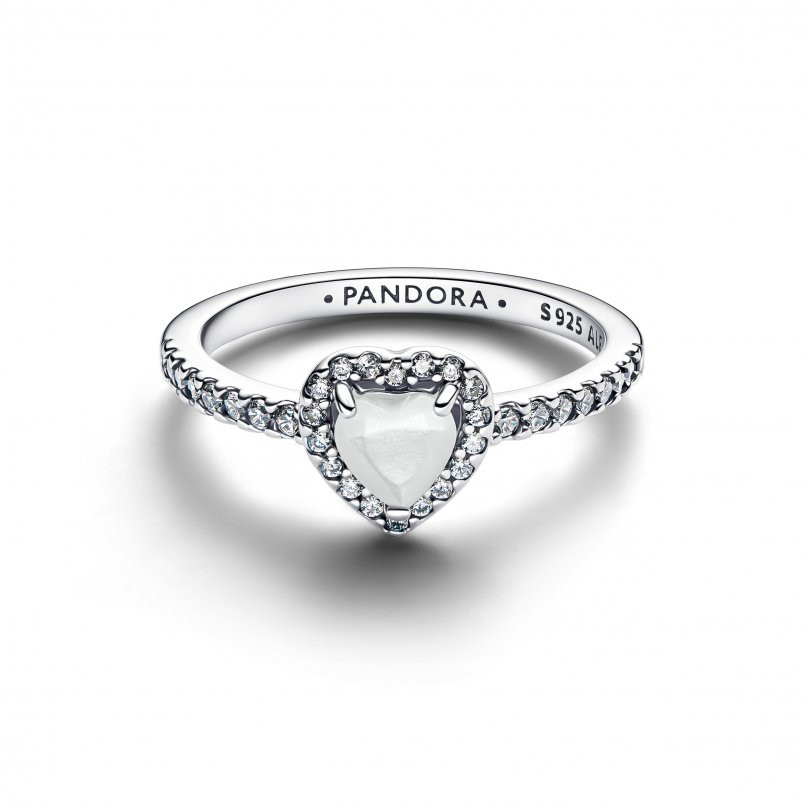 Csupa szív, csupa csillogás. Sterling ezüst gyűrűnk jellegzetessége a pavé glóriával körülvett fehér színű, kiemelkedő, mesterséges kristályból készült szív és a fél pavé karika. Tökéletesen halmozható darab, melyet a szeretet ihletett.
