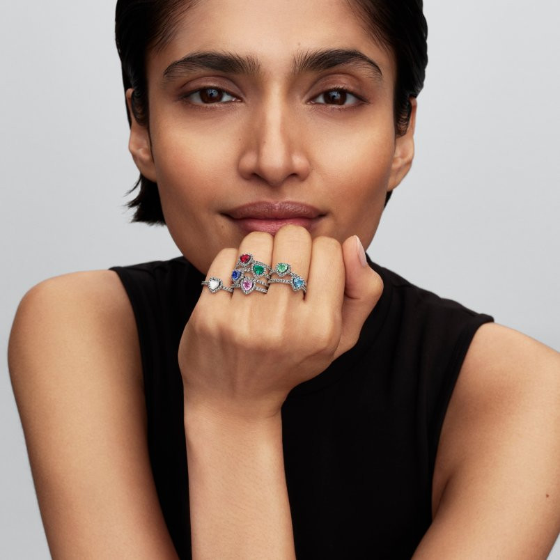 Csupa szív, csupa csillogás. Sterling ezüst gyűrűnk jellegzetessége a pavé glóriával körülvett zöld színű, kiemelkedő, mesterséges kristályból készült szív és a fél pavé karika. Tökéletesen halmozható darab, melyet a szeretet ihletett.