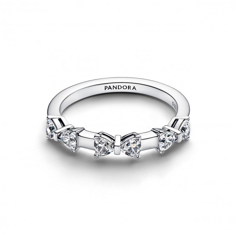 Öltözz csillogásba! Ez a sterling ezüst gyűrű három, kövekkel díszített masnival ünnepli az élet gondosan összefonódó pillanatait.