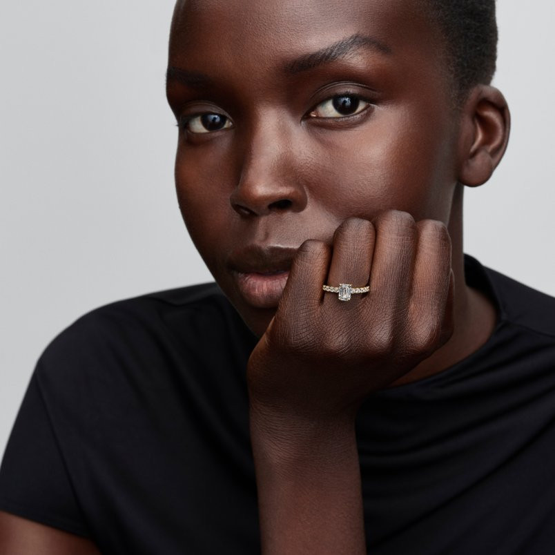 Tökéletesre csiszolva. A 14 karátos arannyal futtatott gyűrű jellegzetessége a kiemelkedő, áttetsző kő és a fél pavé karika. Tökéletes darab, amely bármely viseletet feldob.