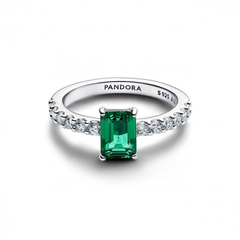 Tűnj ki a többiek közül! A klasszikus ékszerdoboz kincsei ihlette sterling ezüst gyűrűnk jellegzetessége a zöld színű, kiemelkedő mesterséges kristály és a fél pavé karika.