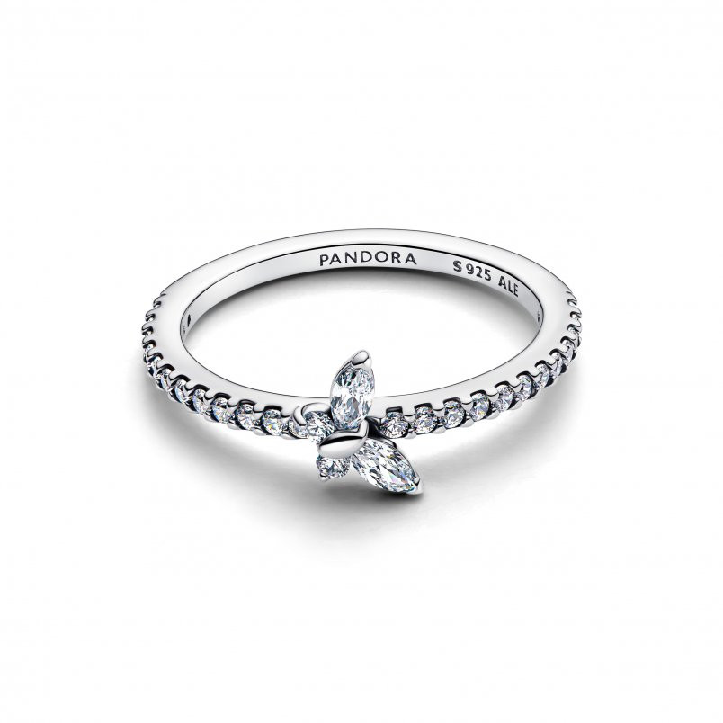 Vigyél finom csillogást a megjelenésedbe! Ez a sterling ezüst gyűrű áttetsző, négyszögletes cirkóniával, valamint egy ferdén foglalt pillangóval díszített, amely az átalakulás és a szépség szimbóluma.