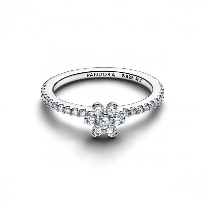 A virágzás és a csillogás találkozása. A sterling ezüstből készült gyűrű jellegzetessége az áttetsző kövekkel kirakott kiemelkedő virág és a fél pavé karika. Szikrázóan feltűnő darab, amely minden megjelenést feldob.