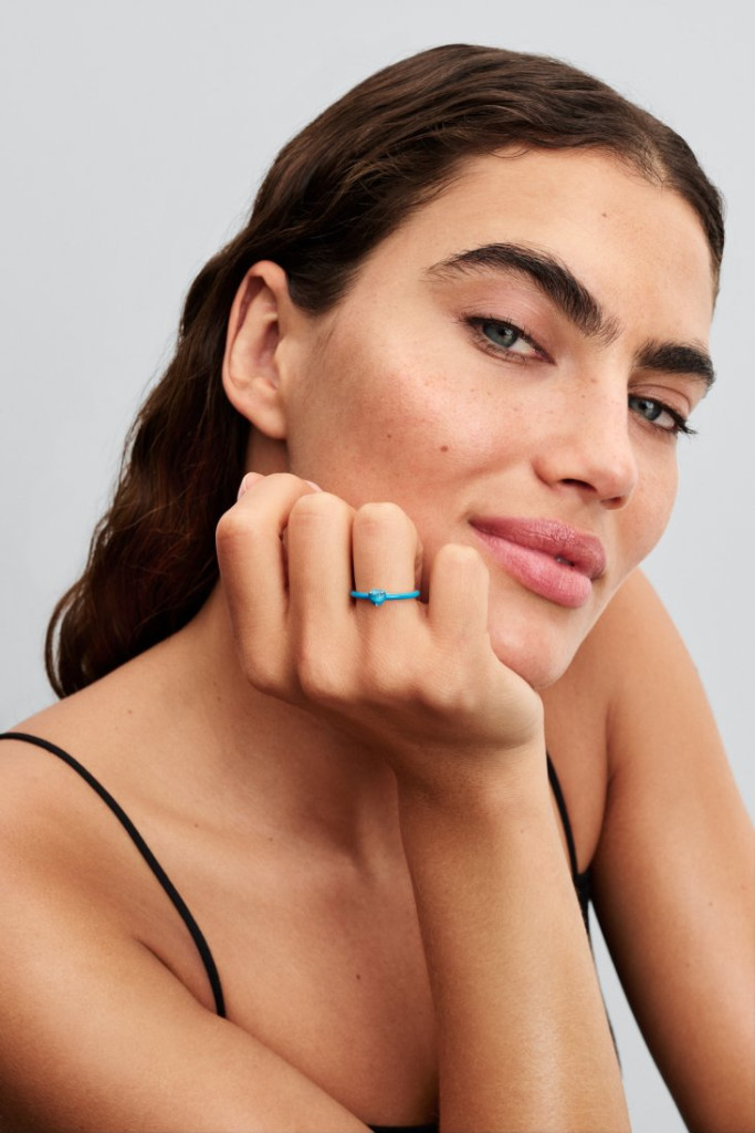 Tegyél szívből jövő gesztust a Türkiz szív alakú kővel díszített gyűrűvel. A sterling ezüst szív motívummal, türkiz ihletésű kővel és türkiz tűzzománccal díszített ékszer a szeretet és a kapcsolat szimbóluma.