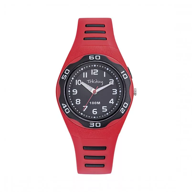 Óratok anyaga: Műanyag Óratok átmérője : 34 mmÓratok formája: kerekÓratok színe: feketeSzíj anyaga: Műanyag Szíj színe: pirosKijelzés típusa: Analóg Analóg kijelzés