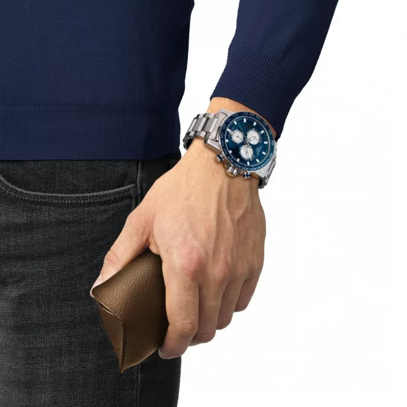Óratok anyaga: NemesacélÓratok átmérője : 45,5 mmÓratok formája: kerekÓratok színe: kékSzíj anyaga: NemesacélSzíj színe: ezüstKijelzés típusa: Kronográf A segédszámlapokról leolvasható a kronográf (stopper) által mért idő.