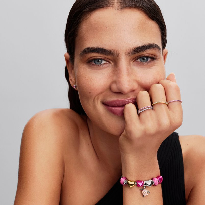 Végtelen ragyogás a végtelen szeretetedhez. A körben végig rózsaszín cirkóniával kirakott sterling ezüst gyűrű a soha véget nem érő kapcsolatot és a ragyogást szimbolizálja minden szögből.